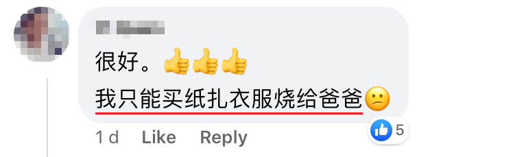 ▼网友们还伤心的表示现在只能买纸扎衣服烧给爸爸了!