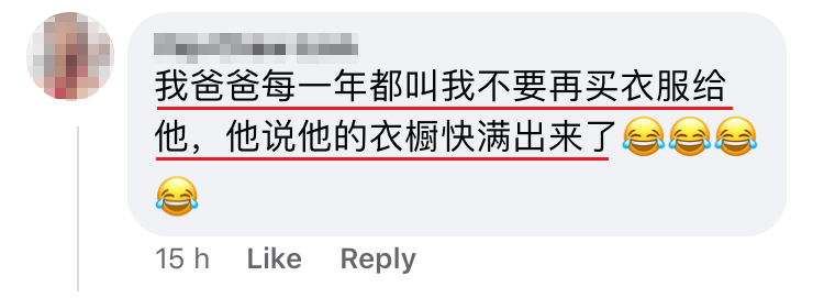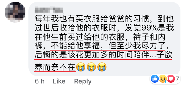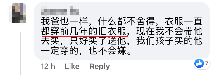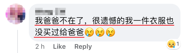 ▼这个帖文也让没买过新衣服给爸爸的网民感到遗憾!