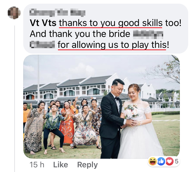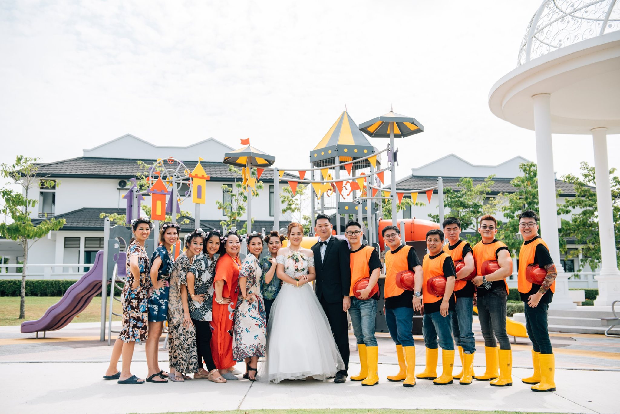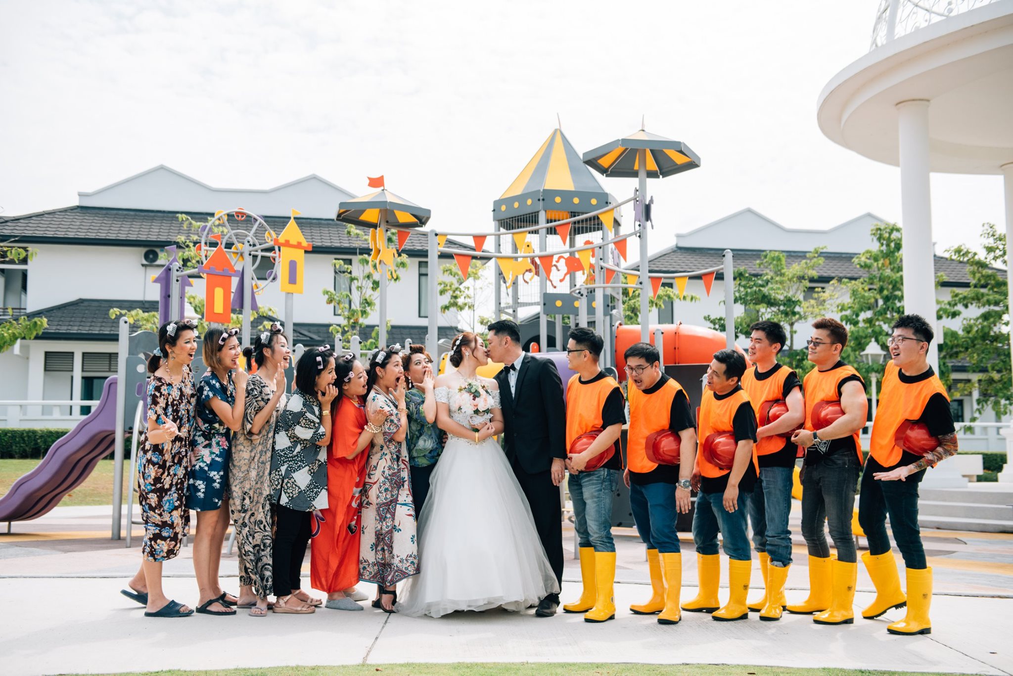从 Victor 所分享的结婚照里可以看到,新娘穿着漂亮的婚纱和姐妹团一起拍结婚照。