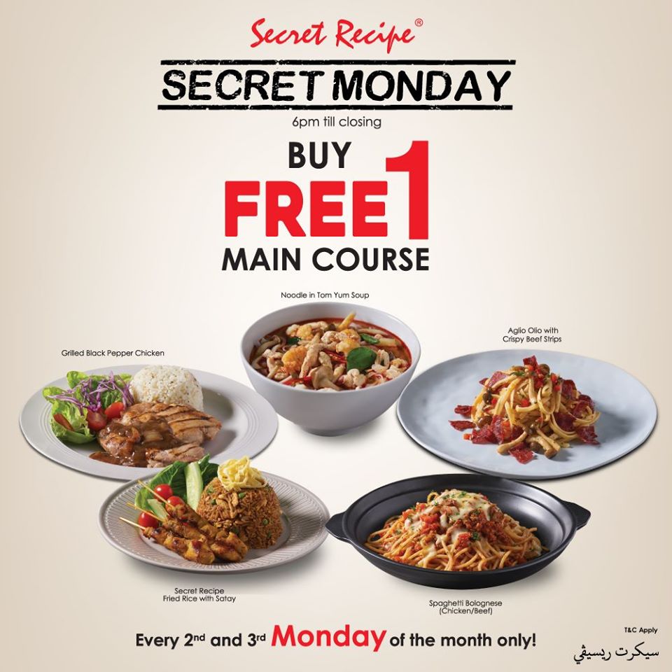 如今大马 Secret Recipe 推出主餐美食大优惠!而且还是买一送一哟!