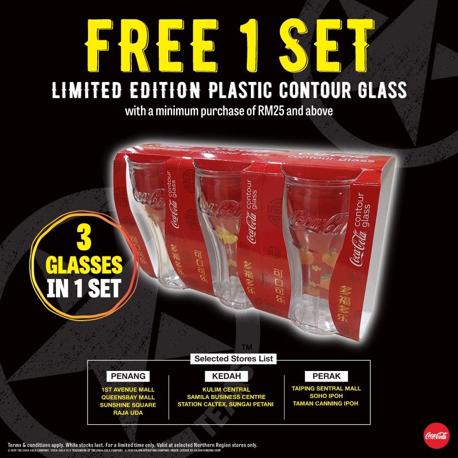 - 只需消费RM25或以上就可以免费获得一套限量版的Coca-Cola透明杯子