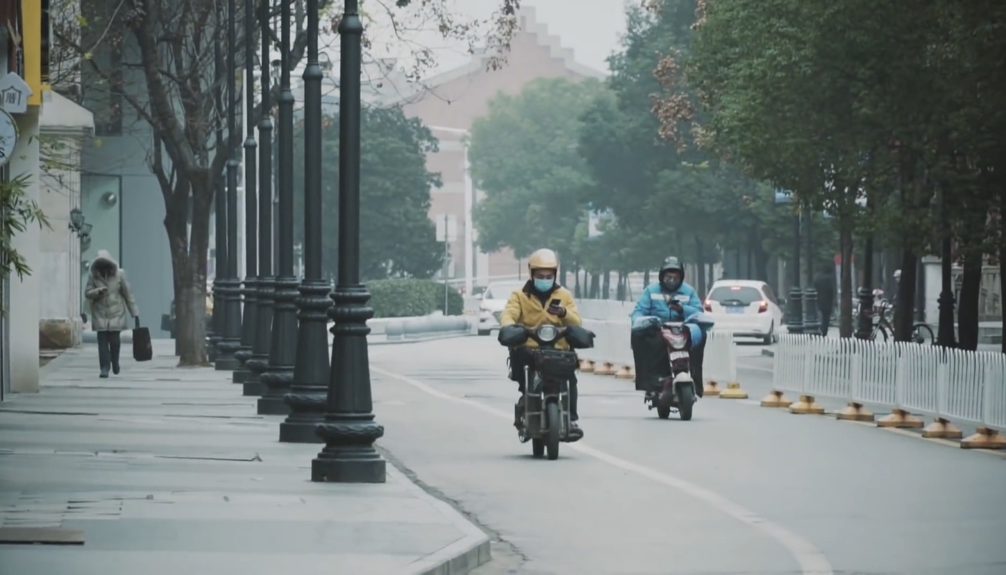 林晨在视频里说道:「我知道有些画面看起来很像电影场景,空无一人的街、临时封闭的城市。但我们都知道,这不是电影,也和电影不一样。」