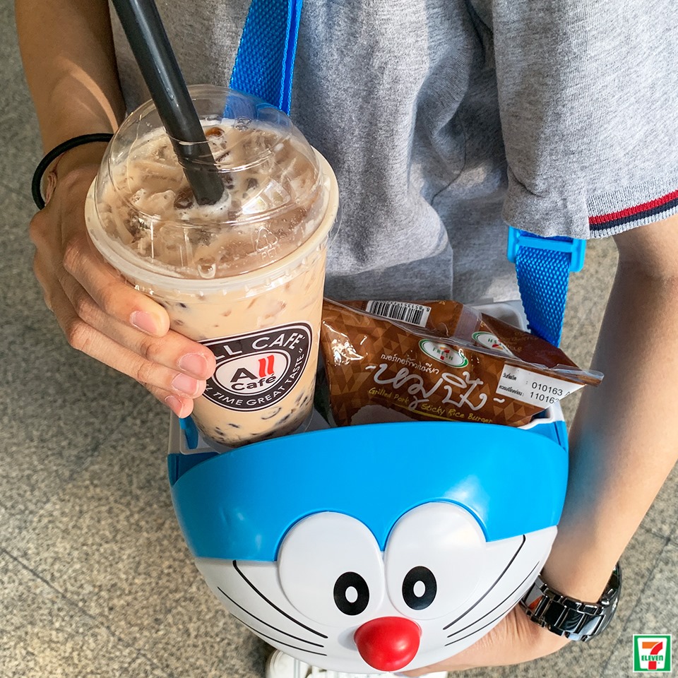 看了是不是心动了呢?!只要你在泰国7-Eleven旗下的All Cafe点上指定的饮料及小吃并以249Baht(约RM33.58)就可获得这一个哆啦A梦的桶啦!