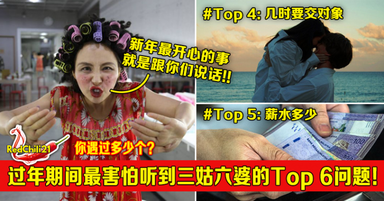 又是新的一年咯!这意味着华人农历新年就快来临了,到时候父母都会带孩子们去到各个亲戚的家拜年!传说中新年最害怕的事情就是三姑六婆最爱问的问题,那么哪些话是三姑六婆们都会说的话呢?