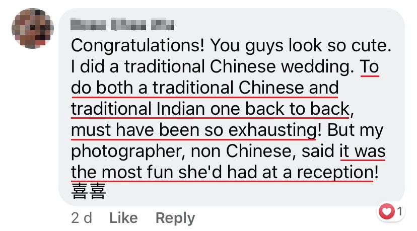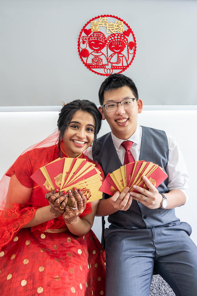 Last month, my husband and I observed two weddings back-to-back (super tiring, would not recommend). One was according to South Indian custom and the other according to Chinese practice. So on day 1 we adorned full Indian regalia and had a ceremony in a Hindu temple then on day 2 we served tea to our relatives and collected lots of hong bao 😁