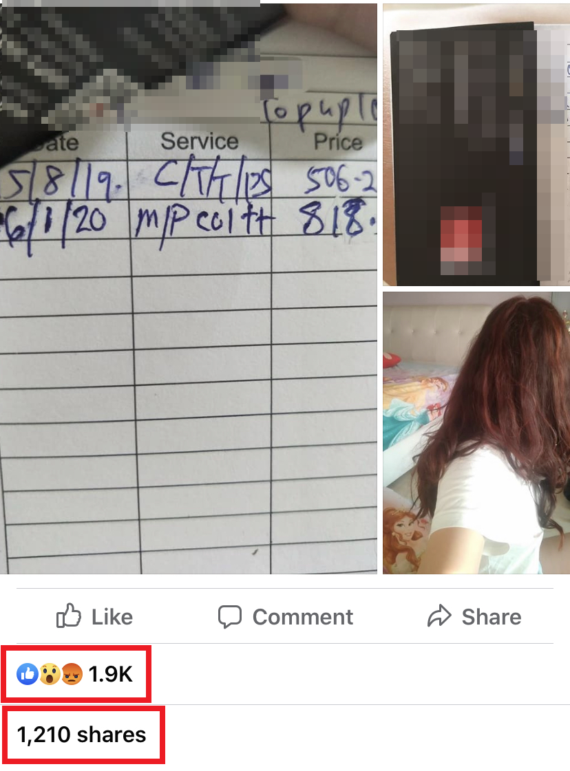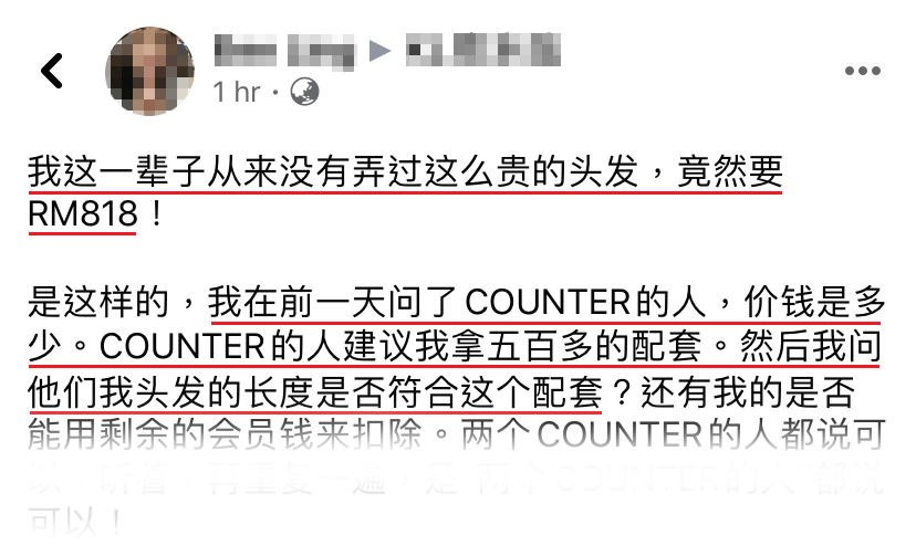 今天一名大马女子在面子书发文,在理发店花了RM818,头发却一点也不好看!