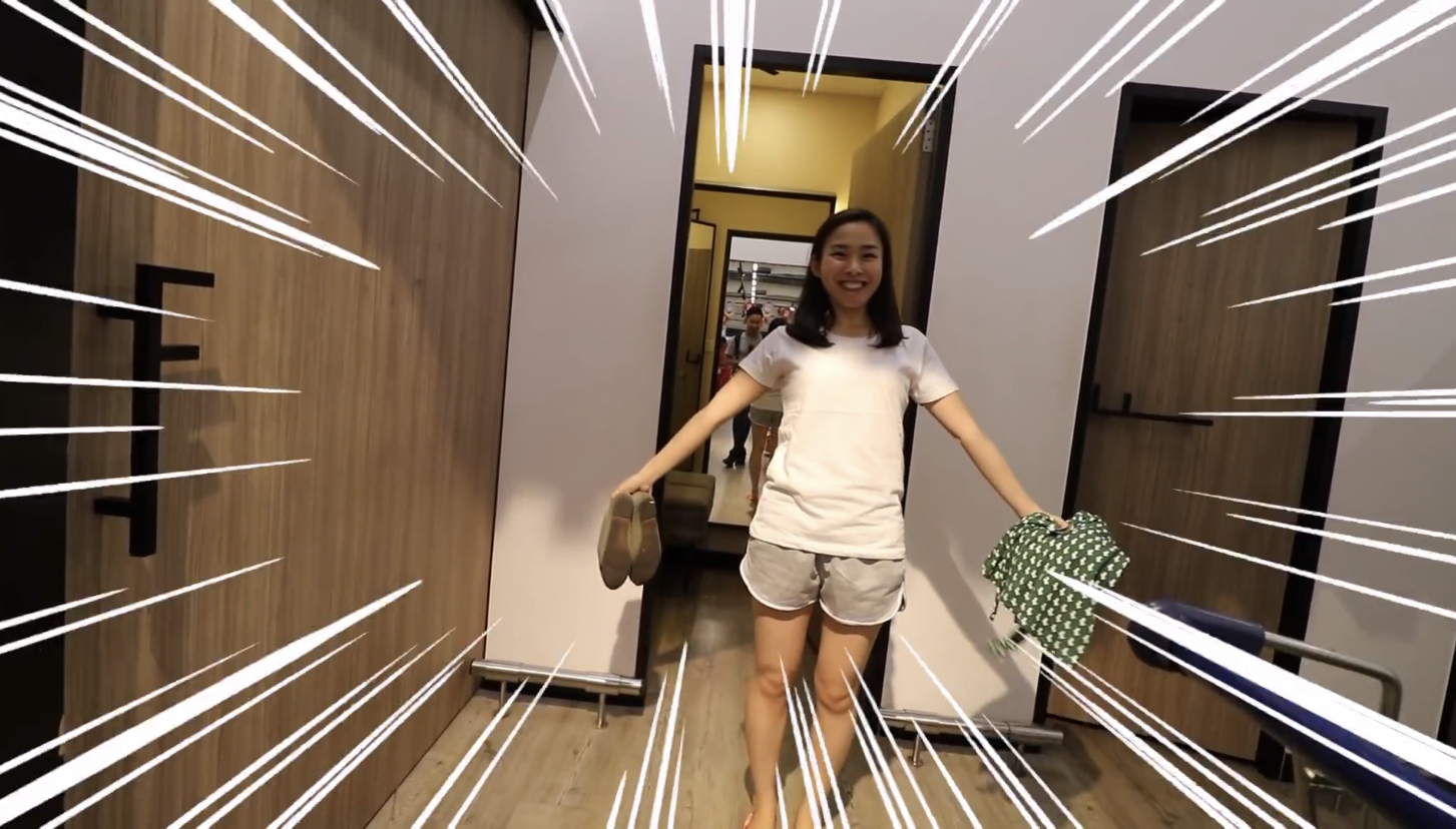 结账以后,他们决定在 Tesco 里直接变装!iChang 在 Tesco 的更衣室换上刚购买的白 T-shirt、短裤和人字拖。