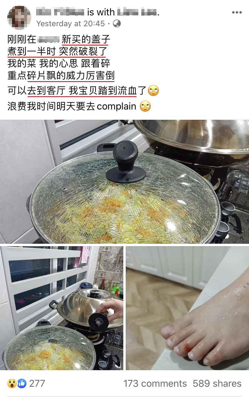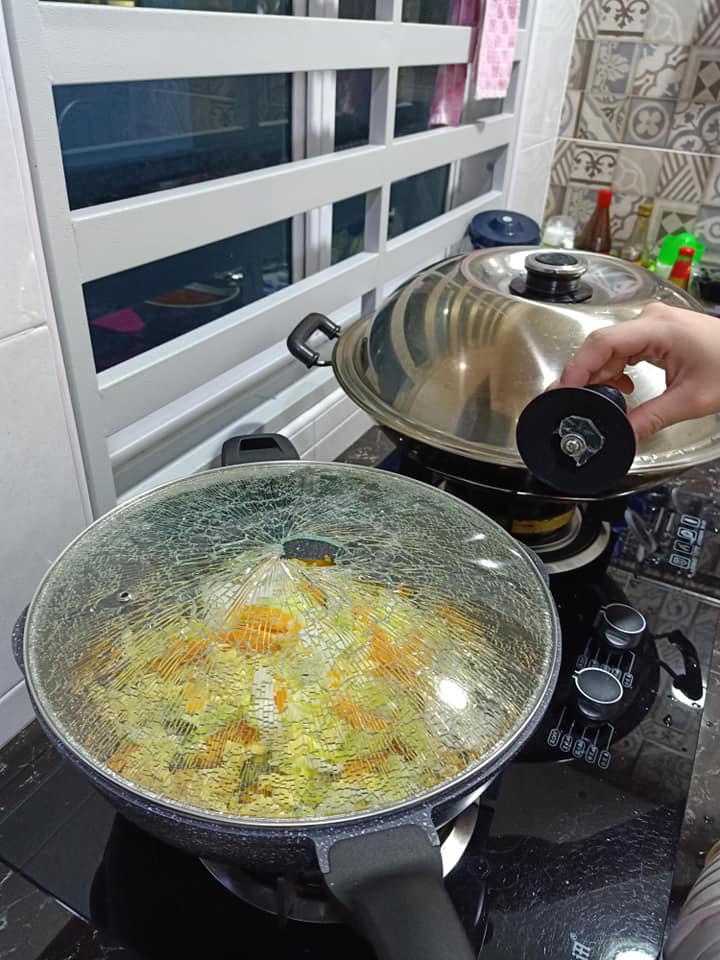 原PO在帖文里表示,刚刚在某著名商场购买了一个全新的玻璃锅盖,回到家后就使用了这个全新的玻璃锅盖来煮饭做菜。