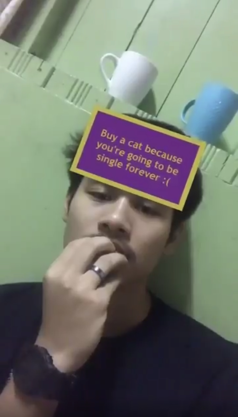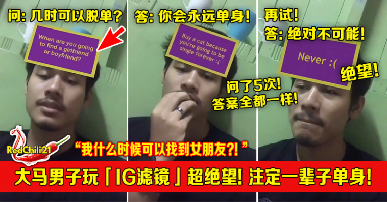 日前,一名大马网友在 Twitter 分享自己玩了该滤镜游戏的悲惨经历。经过几次的提问,该滤镜始终告诉他:「你会永远单身!」让他哭笑不得!