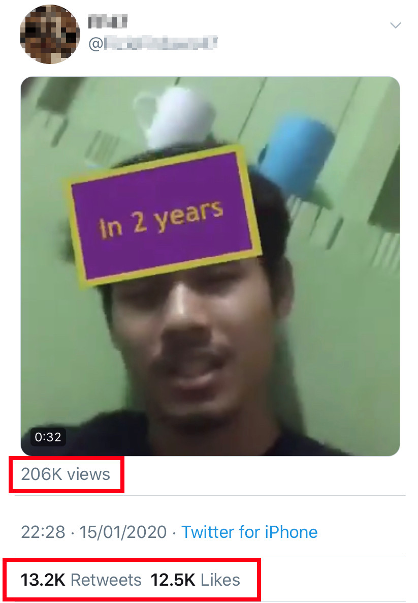该帖文在 Twitter 获得上万人的按赞和分享,事后男子再拍录一个视频,上传至留言处。