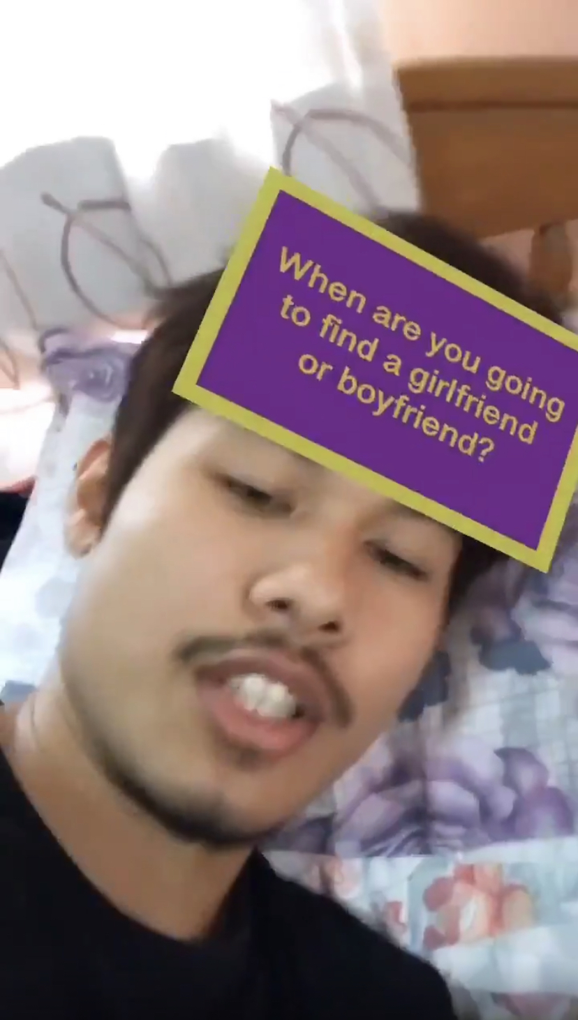 男子在玩 IG 的滤镜游戏时,提出了一个问题:「你什么时候可以找到一个女朋友/男朋友?」