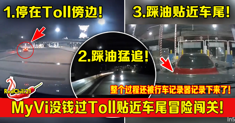 红色MyVi没钱过Toll贴近车尾冒险闯关!整个过程还被网友的行车记录器记录下来了!