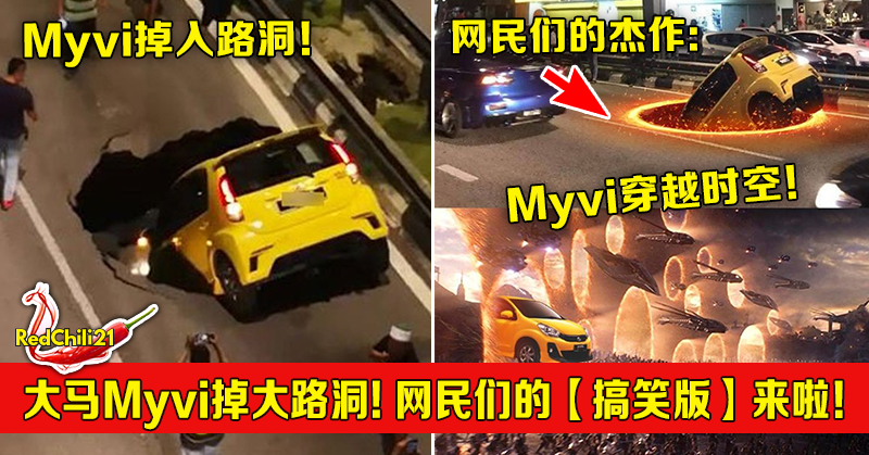 大马Myvi掉入大路洞!网民们的【搞笑版】来啦!网民们的杰作:Myvi穿越时空!
