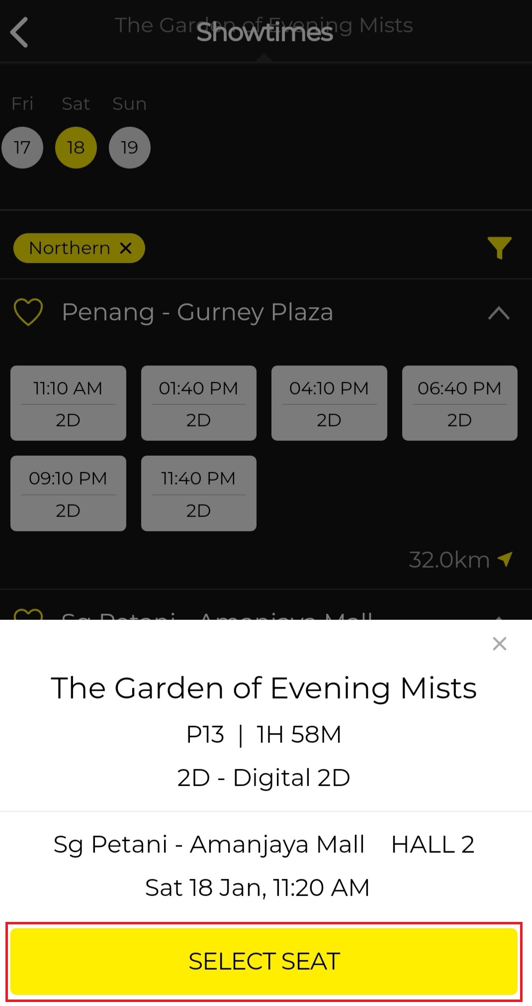 步骤4:选择临近的电影院。例如:Sg Petani——AmanJaya Mall