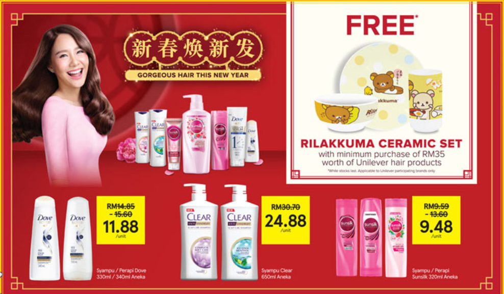 促销条件:需要购买RM35或以上Unilever限定的商品可免费获得一套Rilakkuma的餐具