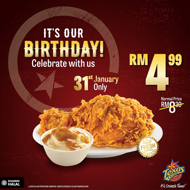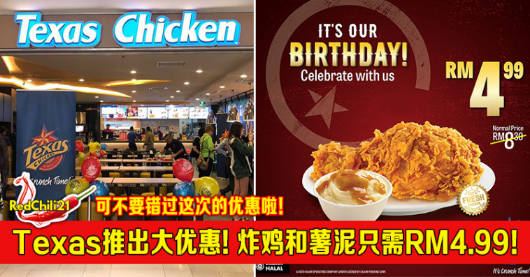 促销活动:Texas Chicken欢庆7周年推出一份炸鸡和薯泥只需RM4.99