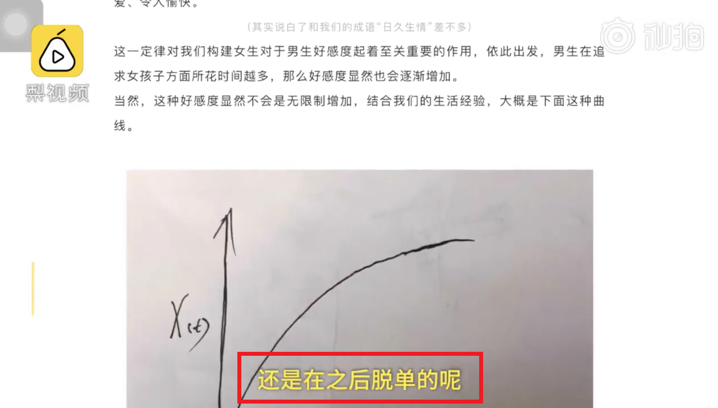 「人和人之间的关系是一个非常感性的事情,我们企图用数学、用公式去描绘它,我个人看来是非常困难的。在找女朋友的这个时候,需要的是你的善良、包容、各种比较温暖的一些东西。」