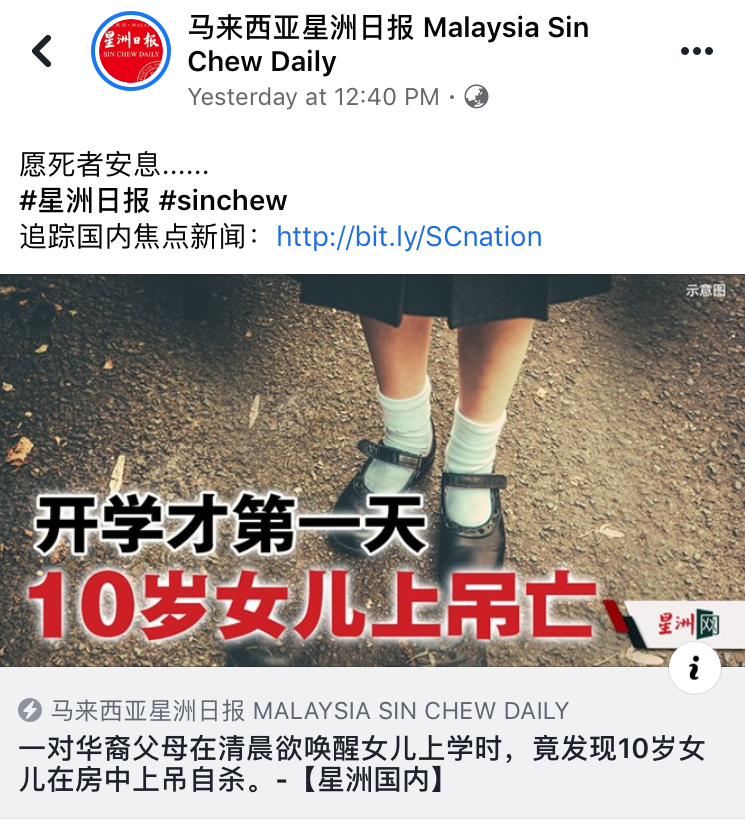 ▼学校霸凌真的是很严重的事,就如昨日星洲日报的报道一名10岁女生开学第一天回家后就上吊自杀!这也令网友怀疑这名小女生是否曾经在学校遭到霸凌!