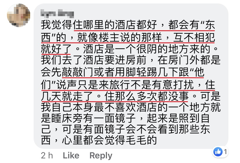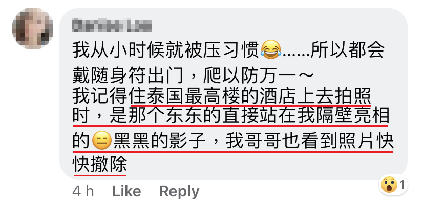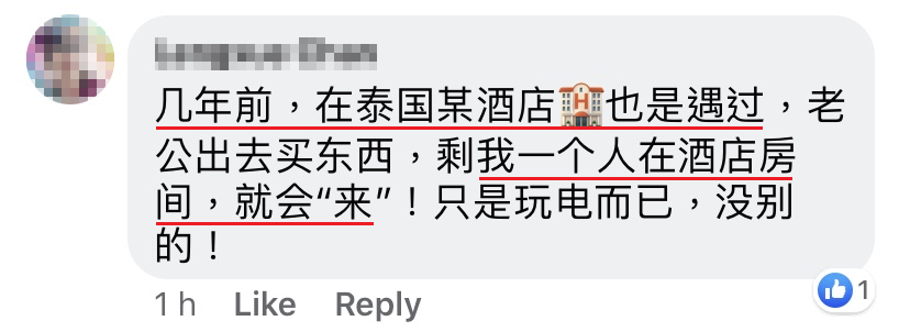 此时进电梯,感觉背后……我就说:「有必要跟着来吗?我们这次只是来泰国拜拜,你不犯我,我不犯你,不可以咩?」然后那个感觉就消失了……