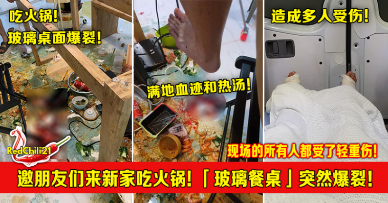 你的家里是否也有和这名网友一样的玻璃餐桌?!一名来自新加坡的网友于昨天(1月20日)发文,自己和友人在家里吃火锅,结果玻璃餐桌突然爆裂,造成现场多人受伤!