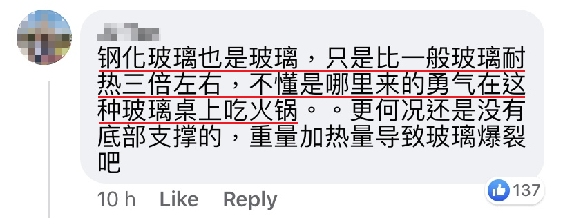 ▼ 大马网友们表示:玻璃桌本来是不能耐热的。
