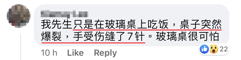 ▼ 有网友则认为这玻璃桌是低级货,才会酿成事故!