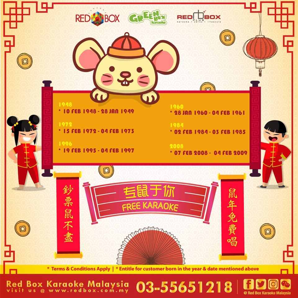 ⑤ RED BOX Karaoke推出生肖鼠年的朋友享有免费欢唱的服务