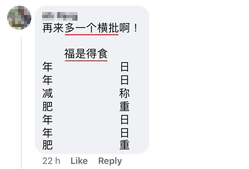 而照片里的春联写着:「年年减肥年年肥,日日称重年年重」。这幅春联所要带给大家的祝福,难道就是「鼠年过个大肥年」?网友们看到该春联上的14个字都笑翻了!