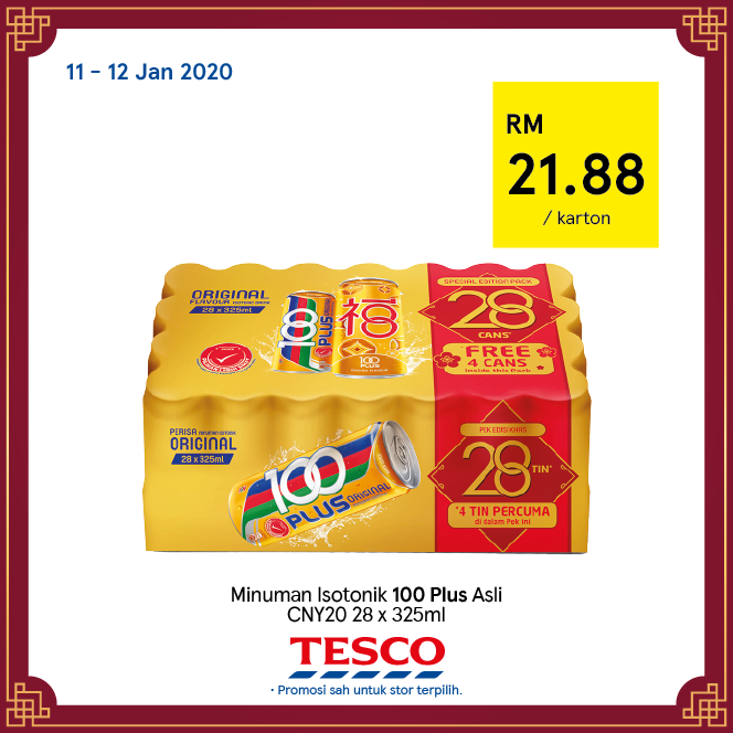 ▼ 28 罐装 100Plus 只需RM22.88!(11 -12 Jan 2020)