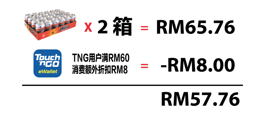 ① 只要你消费满RM60然后使用Touch N Go电子钱包来付款就会获得RM8的现金回扣!