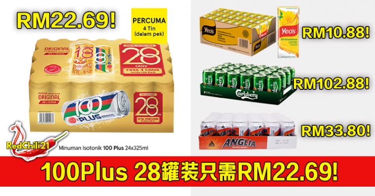 ★ 28 罐装 100Plus 只需RM22.88!(每个家庭只限购买3箱)