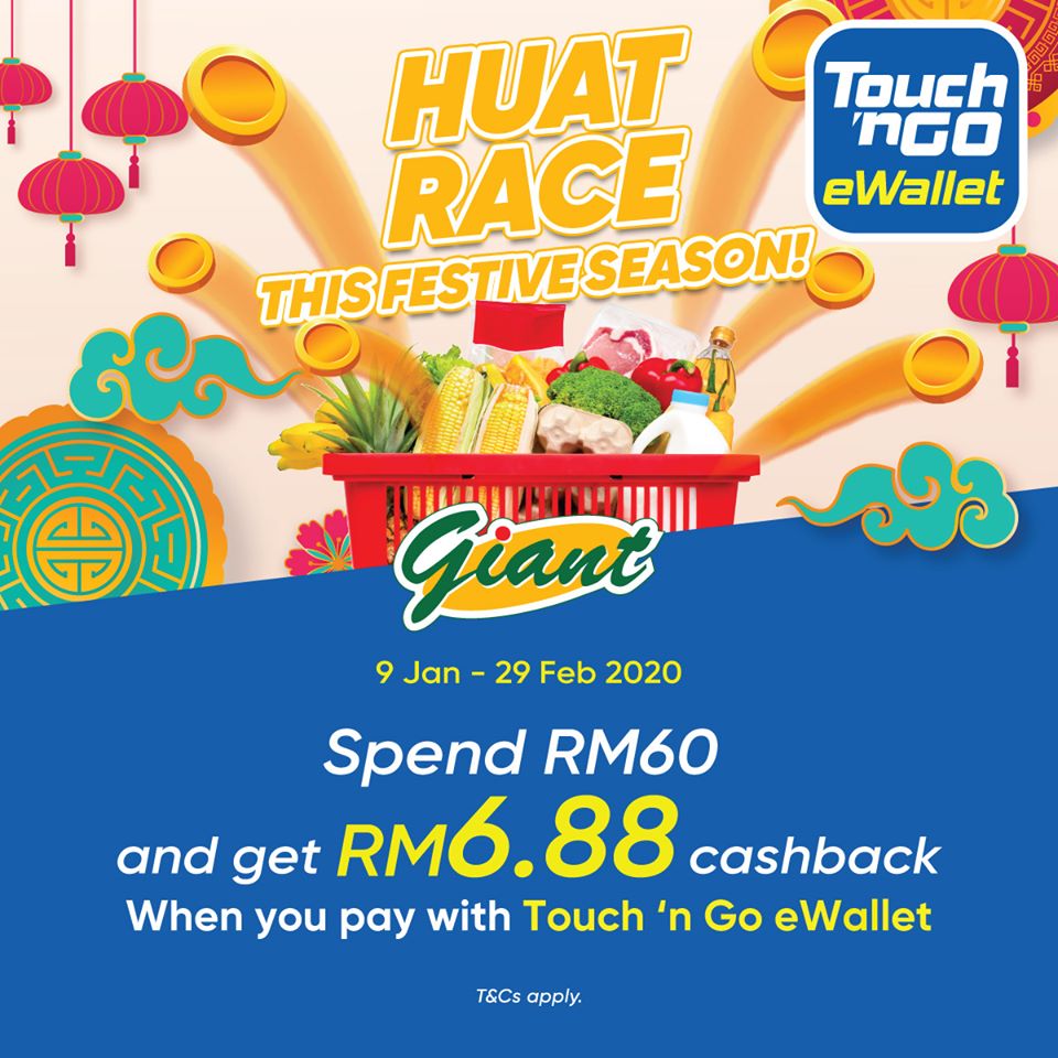 促销活动:在Giant使用Touch N Go电子钱包消费可获得RM6.88现金回扣