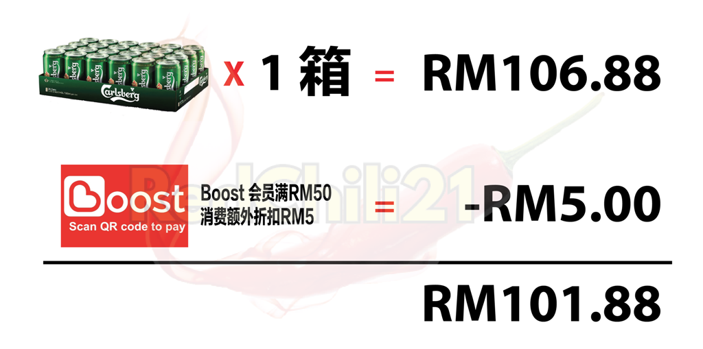 ▼如果你会使用Boost 电子钱包还能买到RM101.88*的Carlsberg 啤酒!