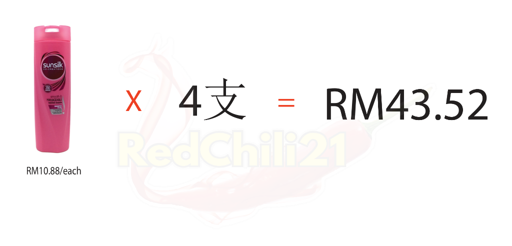 ▼ Sunsilk 洗发液x4 = RM43.52(已经超过RM35指定消费数额)