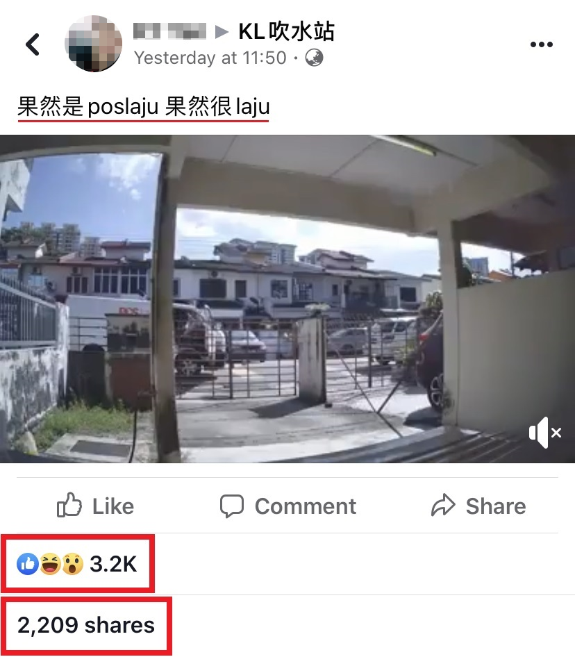 该网友分享一段影片,影片的一开始看到一名快递员开着 Poslaju 的送货车抵达屋子门口。