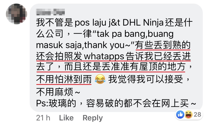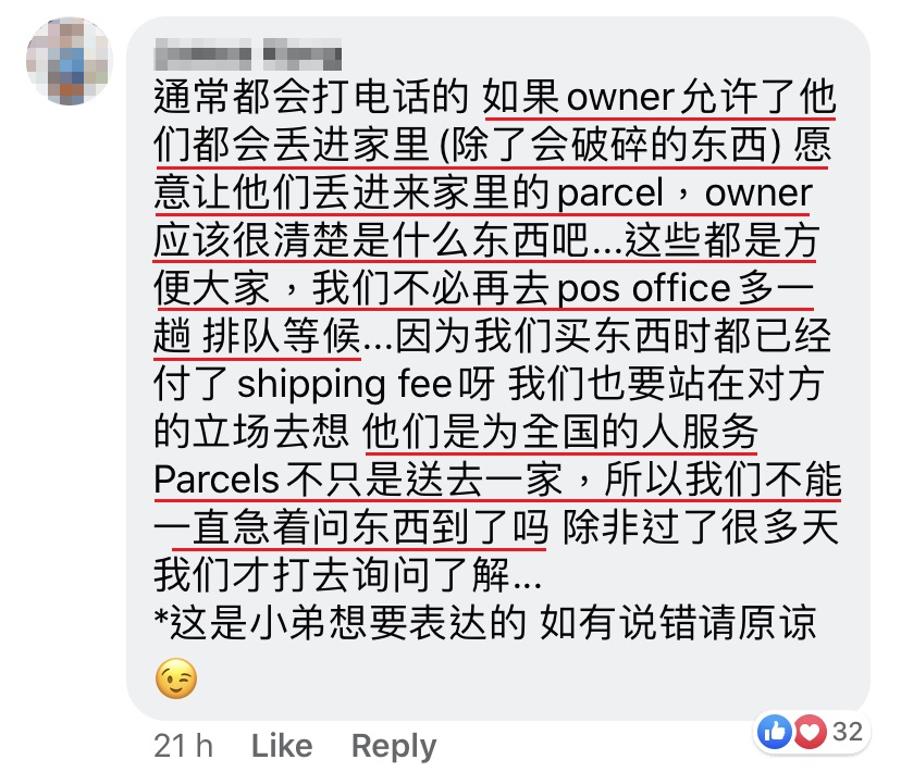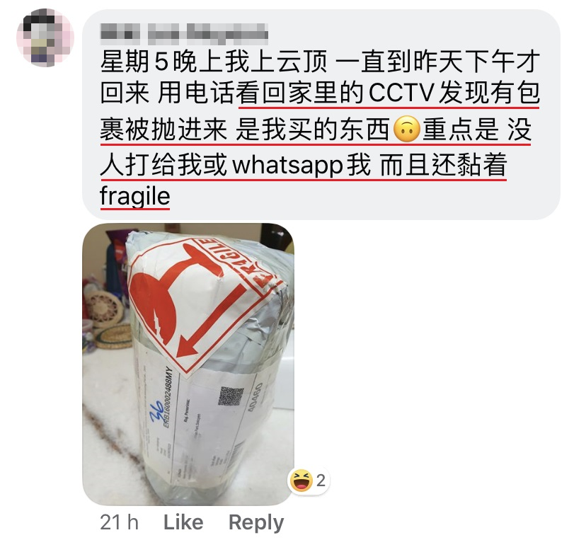 近日,一名大马网友在面子书 PO 文抱怨 Poslaju 在送货的时候过于粗糙,把包裹丢入屋内,引起网友们的热烈讨论。
