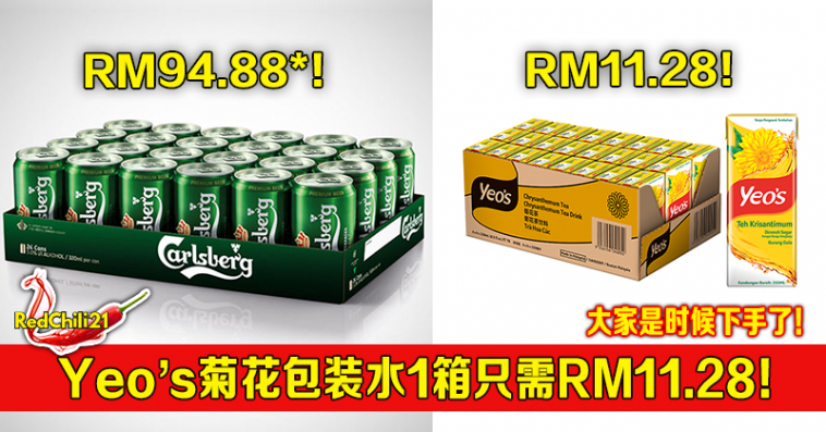 ▼Yeo’s菊花包装水来到目前最低价了,1箱只需RM11.28!