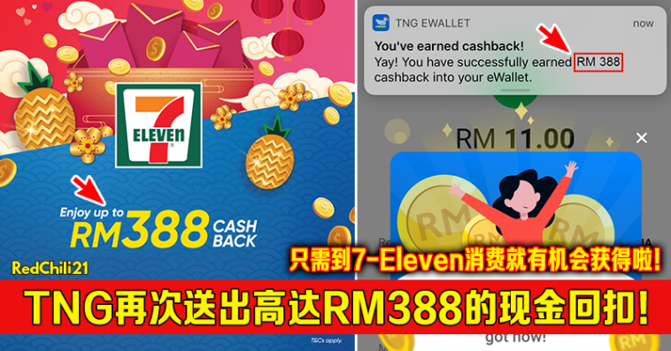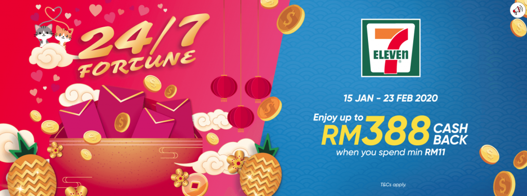 ▼现在你只需到临近的7-Eleven消费RM11或以上就有机会获得高达RM388的现金回扣啦!