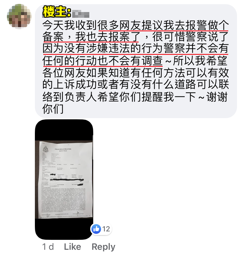 ▼ 而原PO也听了网友们的建议,到警局去报案。