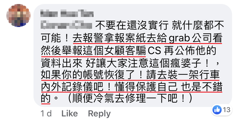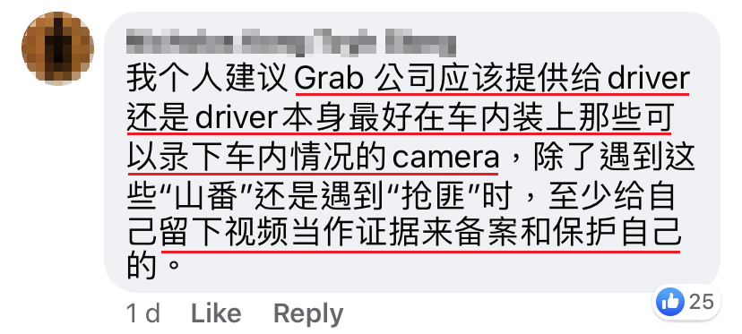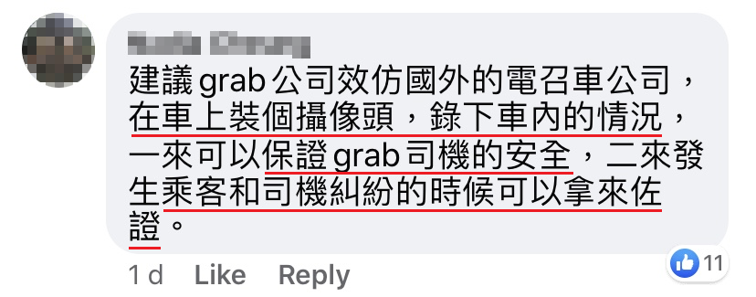 ▼ 为了保障司机们的安全,网友们建议 Grab 公司这么做!