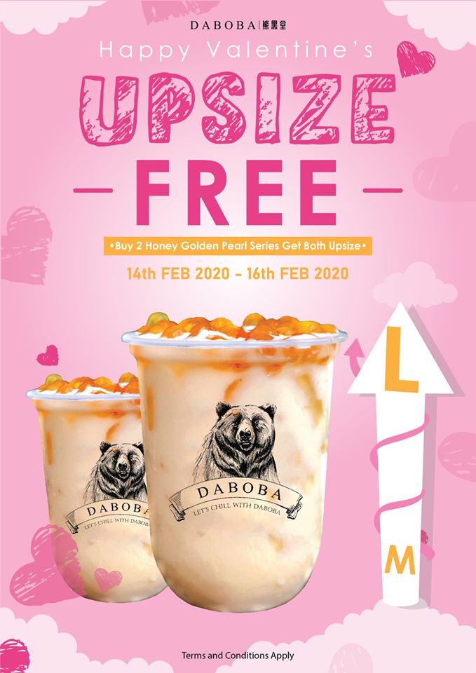 ① Daboba推出购买指定饮料可免费Upsize(中杯变大杯)