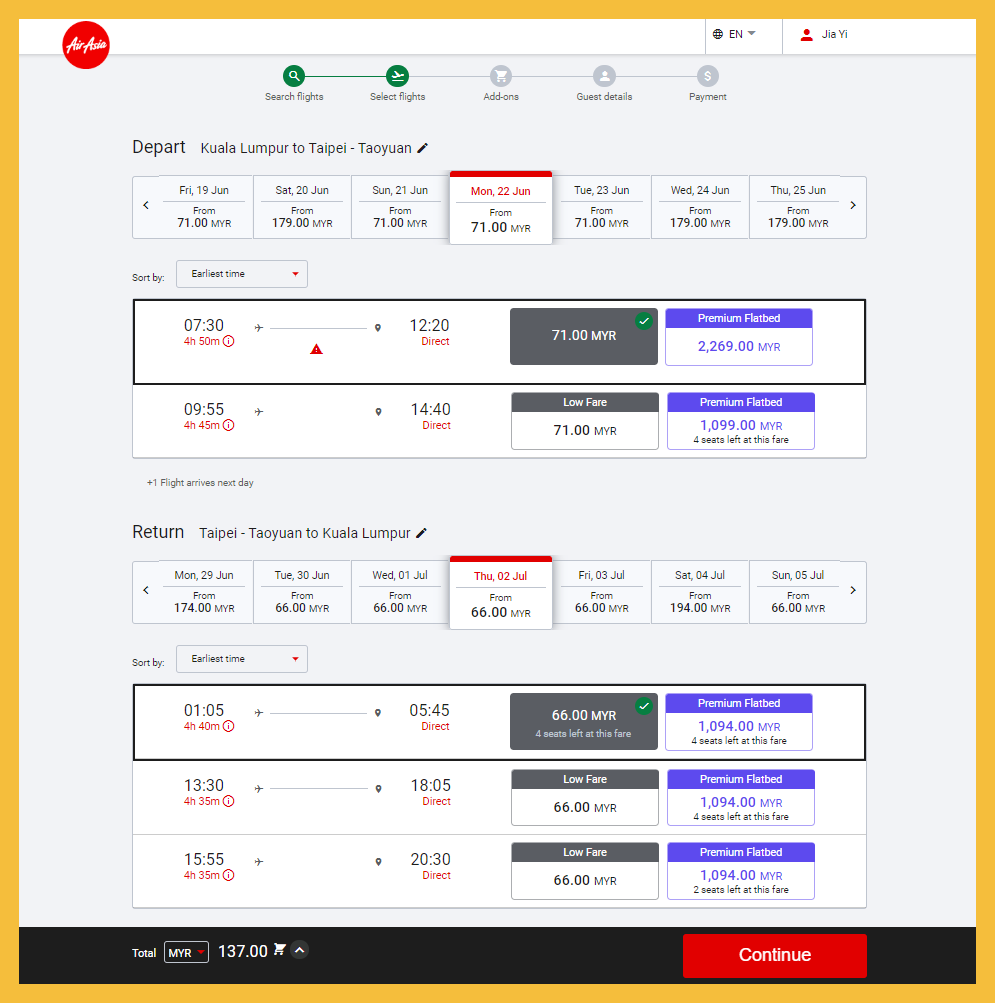 ▼ 以下是小编搜索到:台北来回机票只需RM137