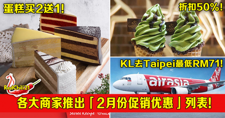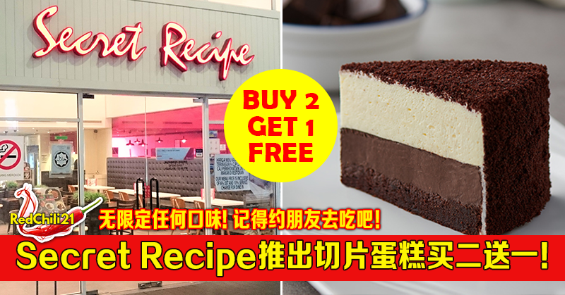 促销活动:Secret Recipe 推出蛋糕大优惠!切片蛋糕买2送1!