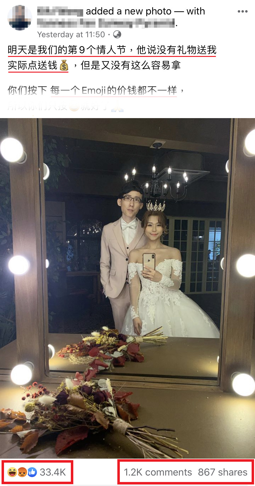 昨日(2月13日)一名大马女网友通过面子书发文,这是她和另一半过第9年的情人节,他们决定发起一项「情人节挑战」!