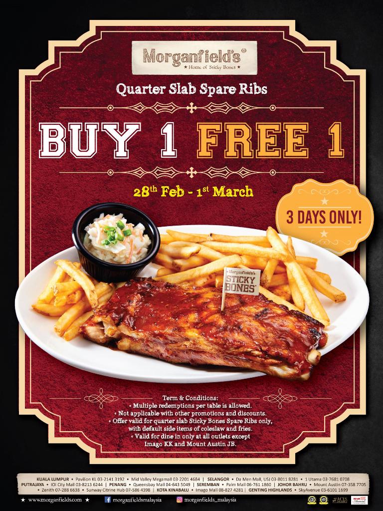 机会难得~记得邀约朋友到 Morganfield’s 吃猪肋排套餐哦!