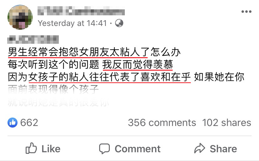 近日,一名大马网友发文分享自己的看法,并分析出「女朋友“粘人”的6个等级」!