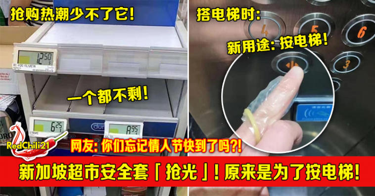 因此,社交媒体日前就疯传了一张照片:用安全套套上手指头,然后按电梯的按钮!新加坡的网友们看了以后才惊叹:「这也是一个不错的方法!」