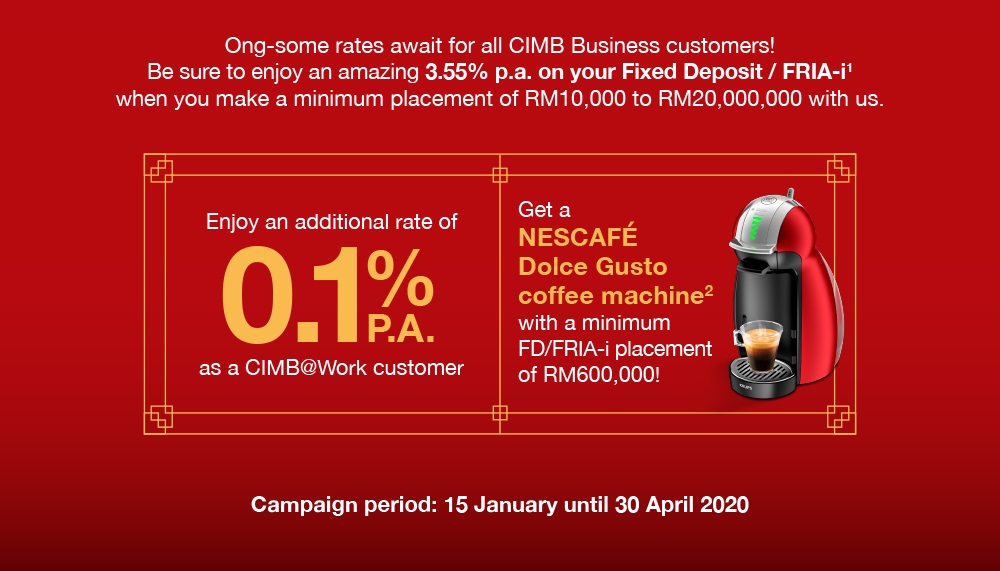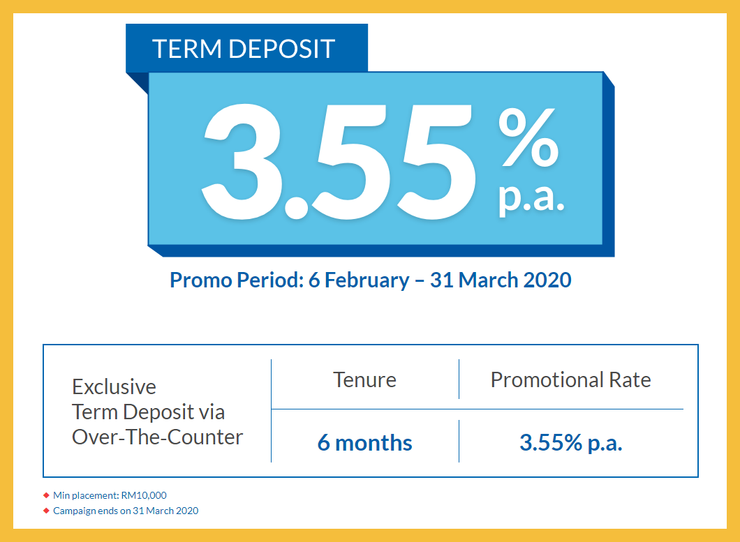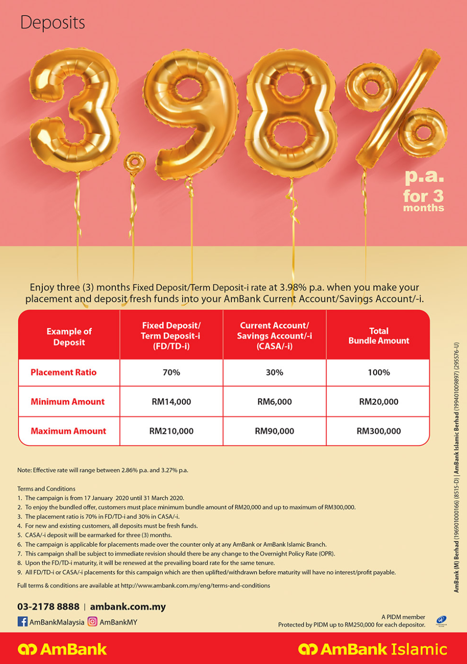 - 定期存款额外的10%必须存入储蓄/来往户口(CASA)