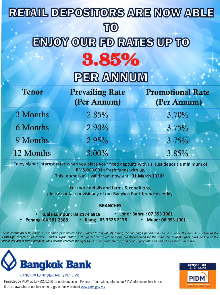 来源:Hong Leong Bank | RHB Bank | Alliance Bank | Public Bank | AM Bank | Bangkok Bank | CIMB Islamic Bank