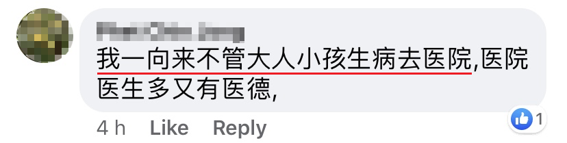 身为一个母亲,孩子生病我也有责任,但是我觉得,做医生的,一定要有该有的医德。每个宝宝都是父母的心头肉,不是你一句「可以采取法律行动」就这么敷衍了事的。